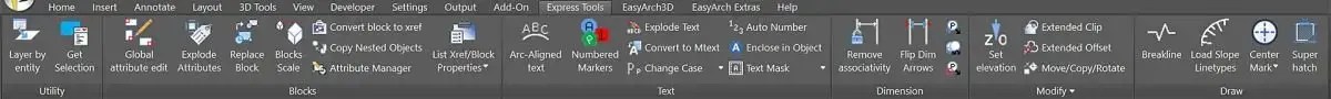 progeCAD Express Tools er et sæt værktøjer, der hovedsagelig er grupperet under Express Tools-menuen, som udvider progeCAD-funktionaliteten, som gør det muligt for brugeren at øge produktiviteten gennem nem , hurtig og effektiv udførelse af komplekse multistep-CAD-operationer. Dette er en anden implementering svarende til AutoCAD-fuld, hvilket gør progeCAD mere intuitiv for AutoCAD-brugere.